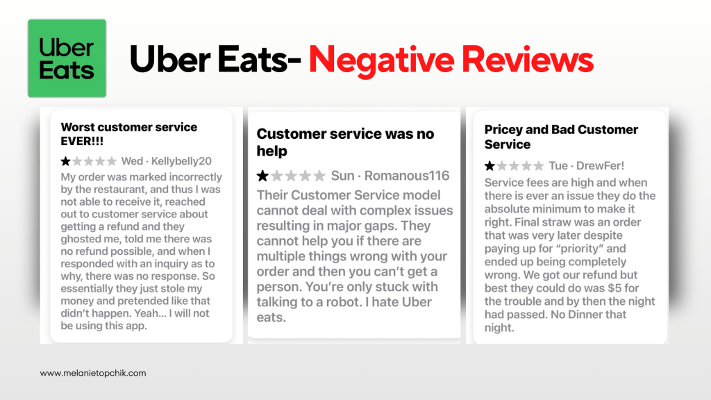 While many users enjoy the convenience of Uber Eats, some reviews highlight significant frustrations with customer service. One user wrote: